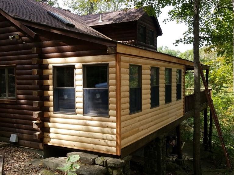 This room addition was built onto an existing Log Cabin. We added 8-foot by 20-foot dining room to the log cabin.